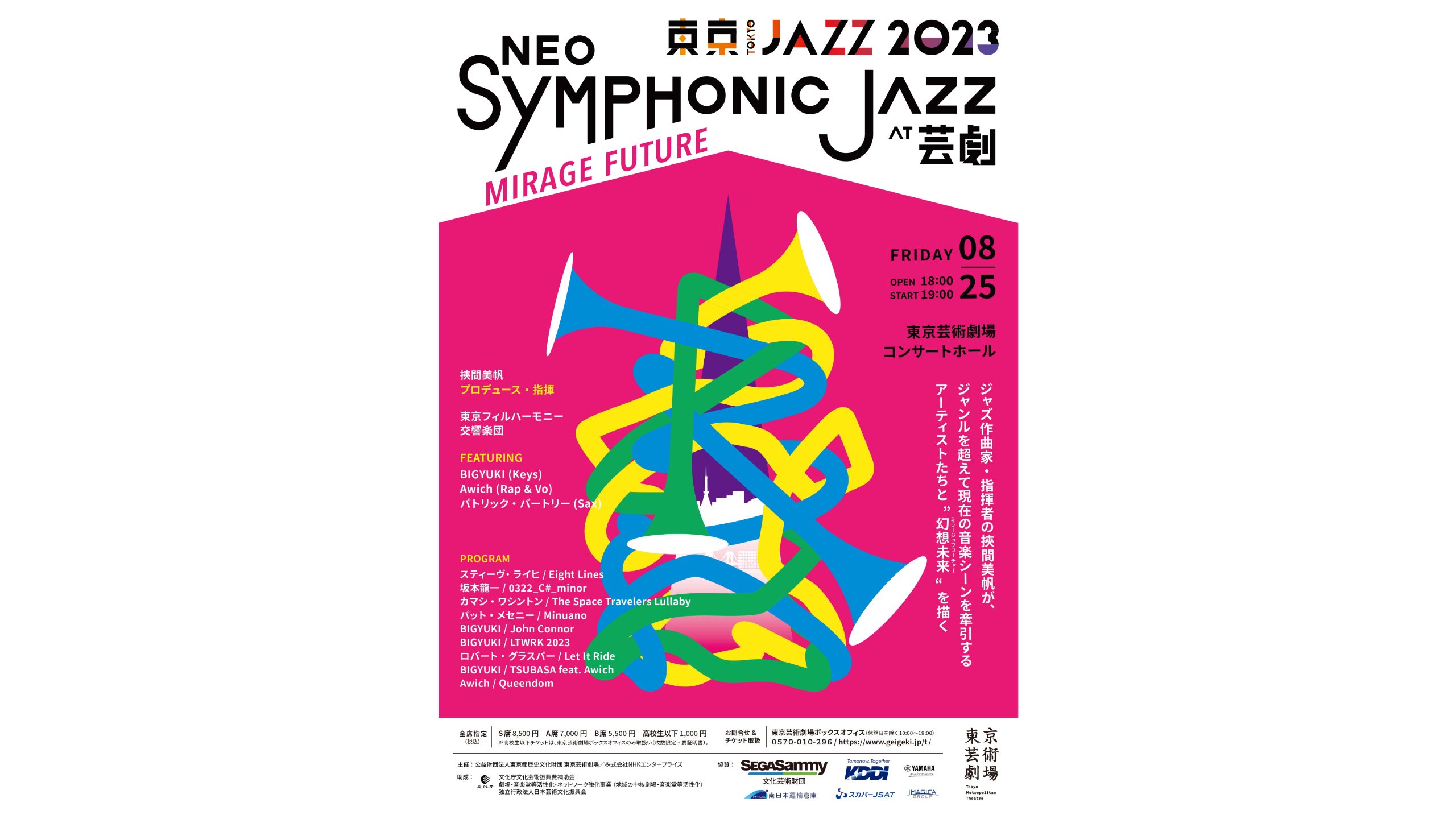 将于 8 月 25 日(星期五)在东京都艺术空间音乐厅举行的 “东京爵士 2023 NEO-SYMPHONIC JAZZ at Geigeki – Mirage Future – “活动的节目单已经公布。