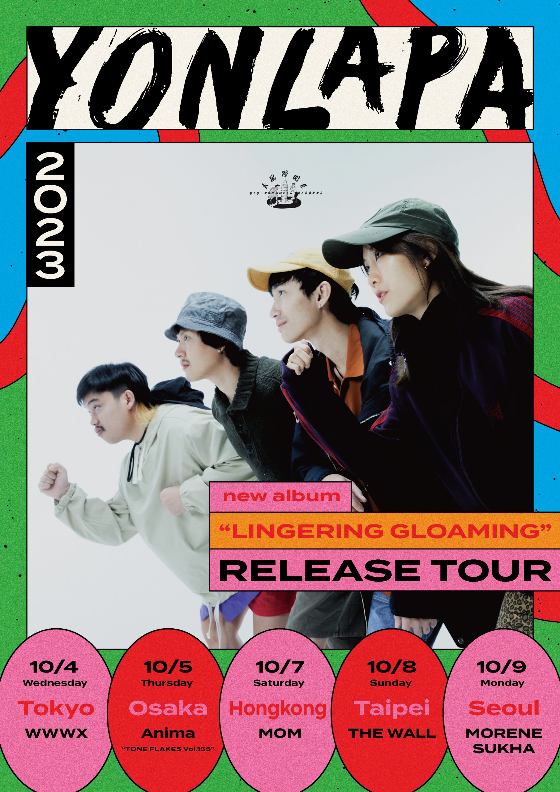 为庆祝专辑发行,”YONLAPA 新专辑《LINGERING GLOAMING》发行巡演 “也已确定,乐队将于 10 月前往东京、大阪、香港、台北和首尔演出。