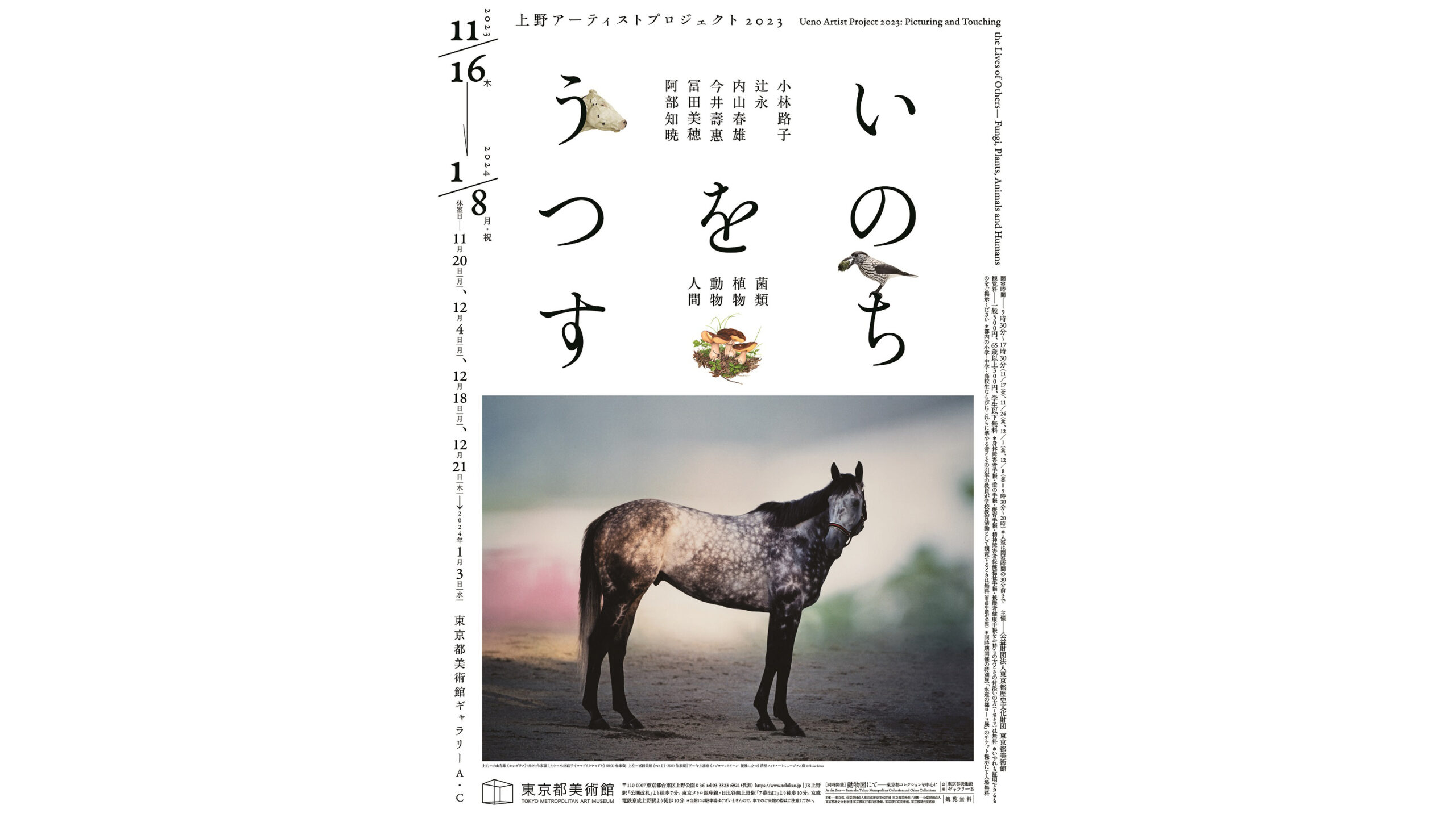 上野艺术家项目 2023:”Inochi wo Utsusu – 菌類、植物、動物、人間 “将于 11 月 16 日星期四至 2024 年 1 月 8 日星期一(国定假日)在东京上野的东京都美术馆举办。
